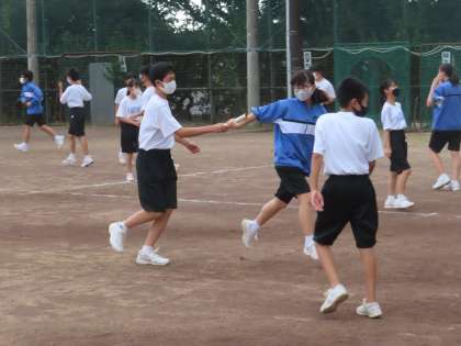 リレーのバトンパスの練習も始まりました。I組もグランドで練習をしています。教室での練習の成果は出たでしょうか?