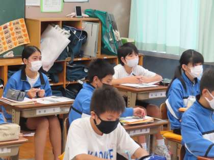 今日は教室での授業です。絵の鑑賞授業で大型モニターに写真を写して説明していました。風刺絵・宗教絵・肖像画・静物画などの説明について時代背景を入れながら説明してくれました。