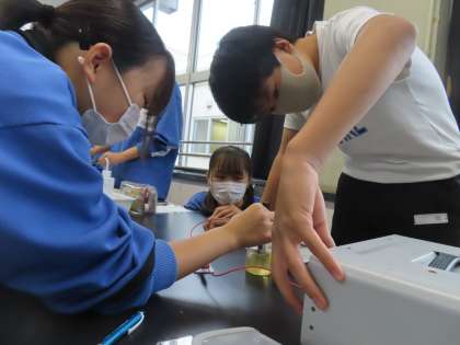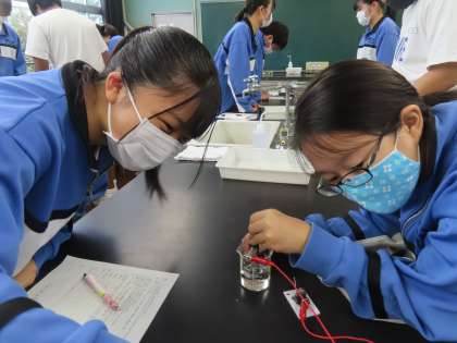 実験です。久しぶりの理科室での実験です。科学変化の実験でした。