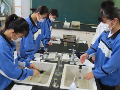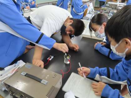色んな水溶液を使って豆電球に変化があるかを調べています。