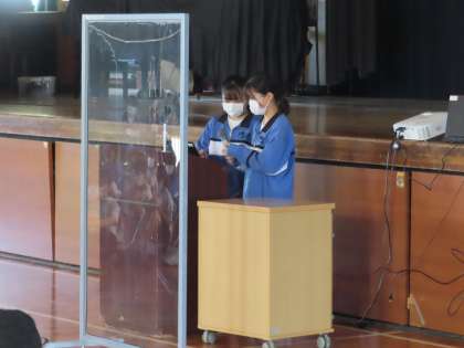 土井・野秋さんペア「門池周辺の匂いについて」黒土・内田さん「菌の繁殖」について発表です。コロナ禍、菌がどのように繁殖していくのかを実験しています。