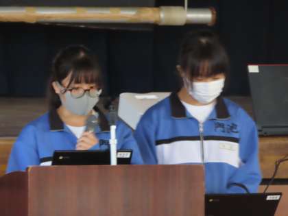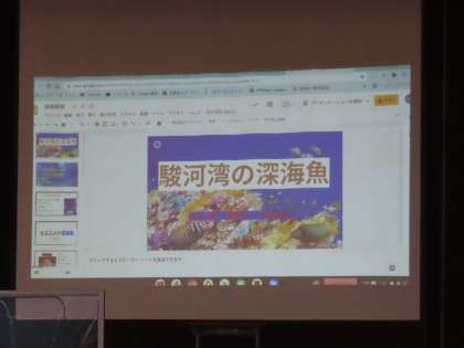 吉田さんの「門池地区を住みやすい街に」清田・谷井・内田さん達の「沼津の戦争について」の発表です。門池地区の小中学生が住みやすい街を考えました。また、沼津の町も空襲を受け「火の海」となったことから調べ学習をしました。