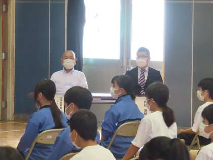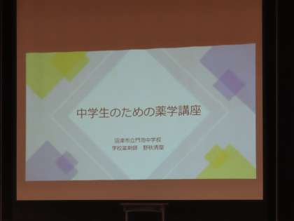 学校薬剤師の野秋先生と沼津警察署から高岸さんが来校し薬学講座を行いました。