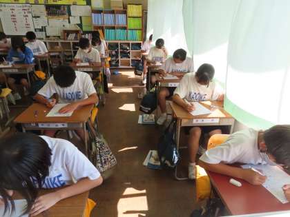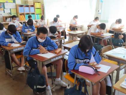 静まりかえった教室からは、角音しか聞こえません。関数の問題をプリントで行っていました。
