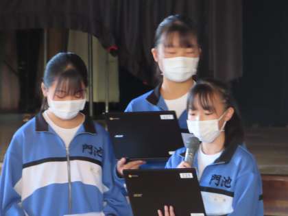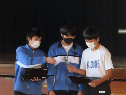 テーマ「門池の今と昔」「暮らしを便利にするユニバーサルデザイン」「光長寺」などのグループ発表もあります。2年代表に選ばれるグループはどこでしょう?投票は教室で・・・