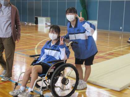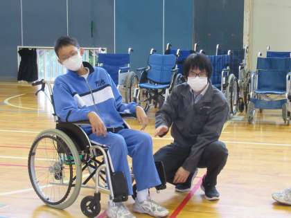 車いす体験はいすが斜めになっただけで、転びそうな感覚になります。段差は自力では越えられません。