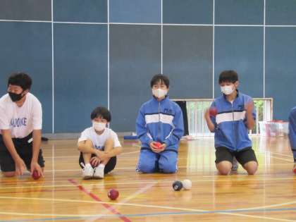 社会福祉協議会とボッチャの指導をして下さった指導員の方々ありがとうございました。沼津市でボッチャをやった学校は、門池中学校がはじめてだそうです。貴重な体験が出来ました。