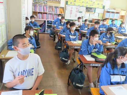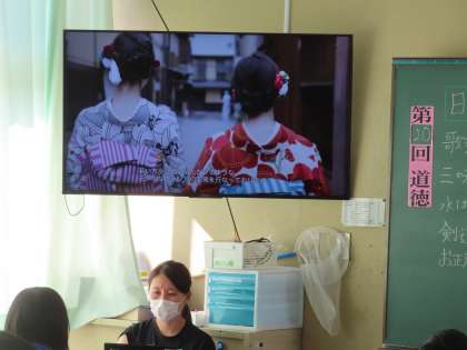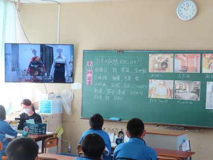 杉山先生の授業です。「日本の伝統文化」について学んでいます。日本の伝統文化と言えば?凧揚げ・カルタなど身近なものが出てきました。しかし、経験したことがある事やものは少ないようです。どうしたら日本の伝統文化を継承できるのかを考えていきます。