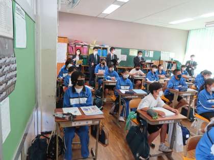 県教育委員会、静東教育事務所、市教育委員会から、本校の授業の様子を見学しに4名の来客がいらっしゃいました。全ての学級で行われた、道徳の授業を参観されました。1年生の授業は「公平ってなんだろう」という教材で担任が行いました。パラリンピックの陸上で活躍した、走り幅跳びの選手の話です。誰にでも公平に接し、積極的に差別や偏見のない社会の実現を努める心情を深める授業となっています。
