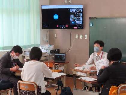 今回は門池小学校の先生方も来校していただき、授業を見ての話し合いにも参加していただきました。門池小中でおこなっている「人権教育の視点」に沿った話し合いがされました。