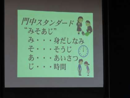 門池中学校スタンダードとしての「みそあじ」「はあと」の説明もくり返ししてくれました。ありがとうございました。最後は生活委員会の鈴木先生からの一言がありました。