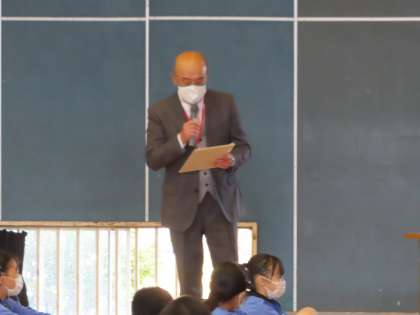 本日の講話は、米久株式会社から瀬川さんが商品開発部の立場から、米久についての説明を行っていただきました。まずはじめに、お天気でおなじみの「ソーセージおじさん」の話から入っていきます。