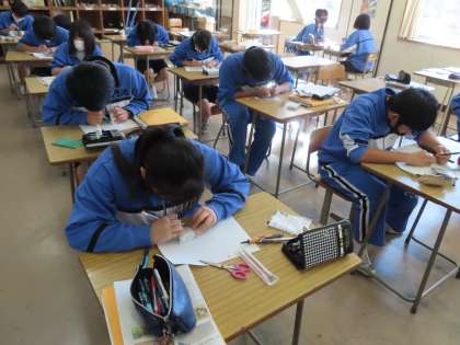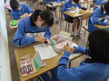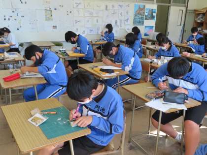 3Bの美術は「篆刻」です。力任せに彫刻刀を使うと怪我につながるし、入れないとなかなか掘ることができません。