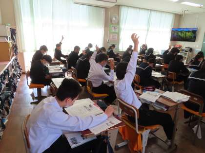 プリント学習を行っています。CDを使ってヒアリングを中心に学習しています。文は長文でした。