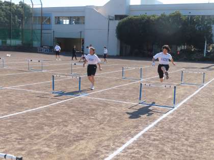 スピードをつけて走り抜ける。大きく走る。などの課題を映像を撮影して確認していました。