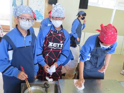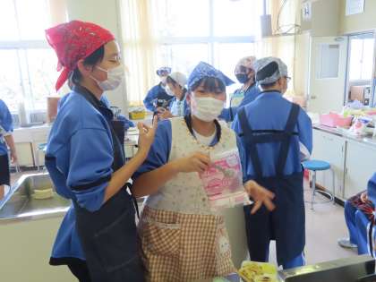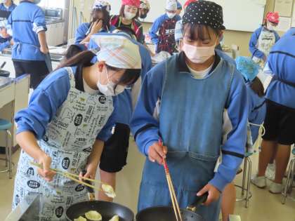 できあがったリンゴパイをおいしそうに食べる生徒が多かったです。なかには焦げてしまった生徒もいましたが・・・おいしそうな顔です。