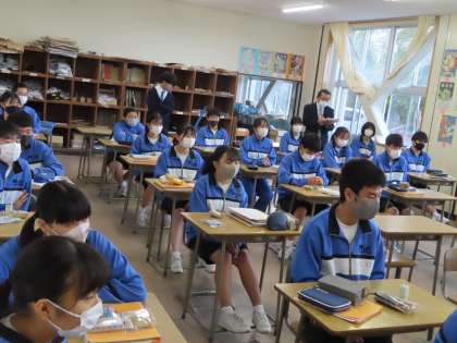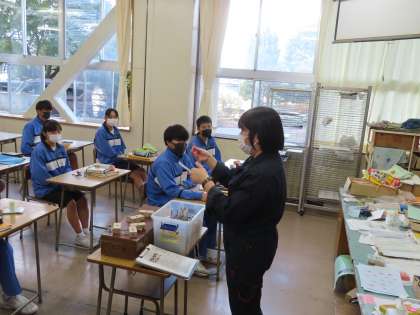 3Cの授業は来客を迎えての授業です。篆刻に必要な道具の説明をしていきます。