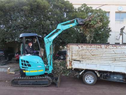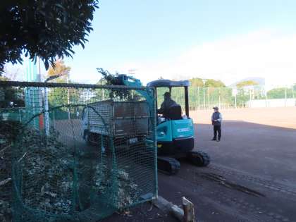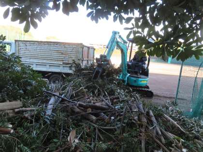 先日伐採し大量に出た樹木の回収に業者が来てくれました。大がかりな撤去となりました。