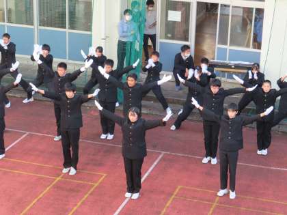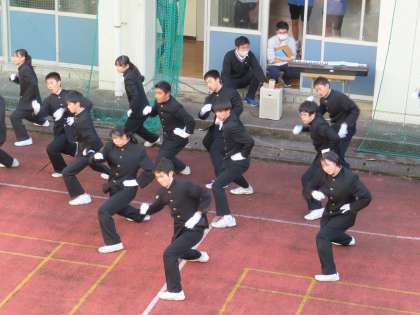 タータンコートの応援団を、全校生徒が見つめ停ます。誰一人として、おしゃべりをする生徒はいません。それだけのパワーがありました。