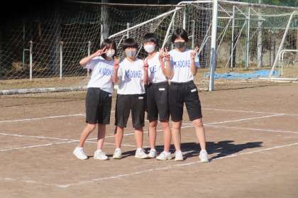 長距離走です。今日は10分間走を行うようです。随分余裕の表情です。女子はリラックス、男子は緊張気味です。