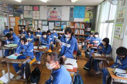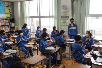「シューズは命を守る 国際協力 」の文章です。意見を言って拍手をもらっています。
