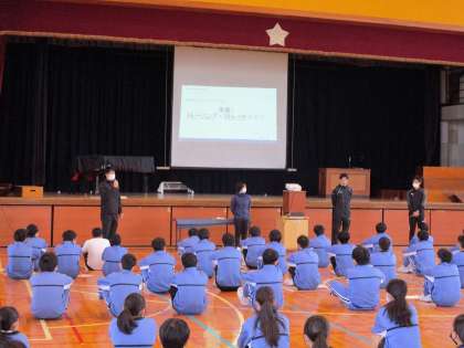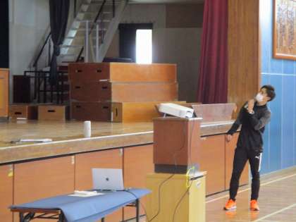 4月より新たな進路で活躍できることを願って3年生を対象に「健康な体作り講座」を行いました。講師には、本校OBの先輩をはじめとした、3人のトレーナースタッフの皆様に「ハンドクラップ」の実践や「栄養講習」、「ストレッチトレーニング」などを指導していただきました。栄養管理のことについて身近な例を用いてわかりやすく説明していただいたり、今後の健康、体力作りに役立つストレッチやトレーニングを伝授していただいたりと限られた時間でしたが、有意義な時間となりました。