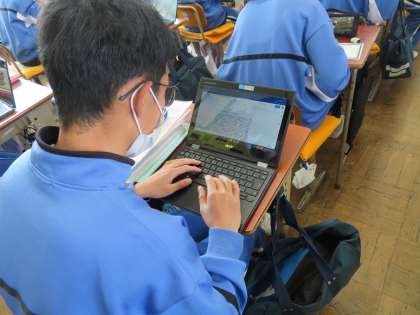 1年間の振り返りをChromebookで記入しています。もうすぐに、最後の授業になっていく頃です。1時間を大切にしていきましょう。