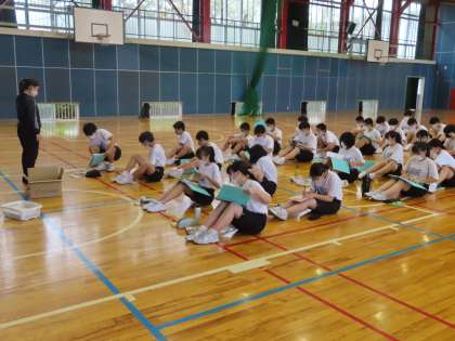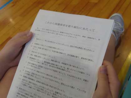 配布物を分けてから列の整頓があります。今年の授業についてガイダンスが行われました。