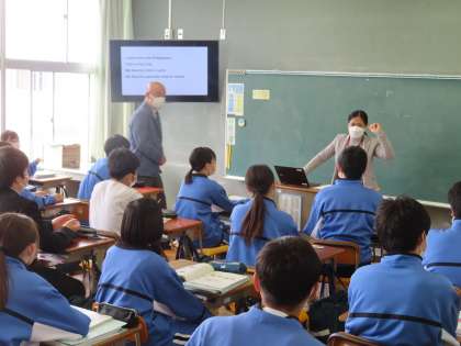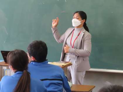 3Bの英語はALTの先生が初めて来てくれました。自己紹介をしてくれます。フィリピン出身の「レイナさん」です。表情豊かにお話し下さいました。