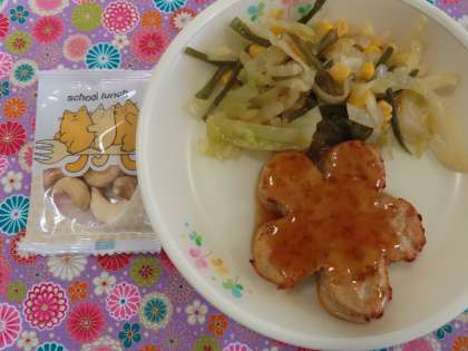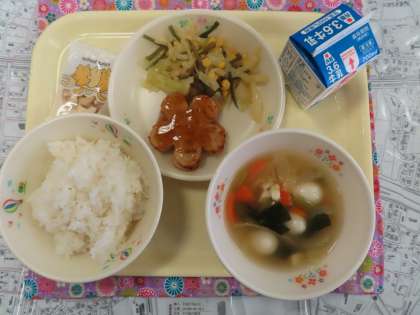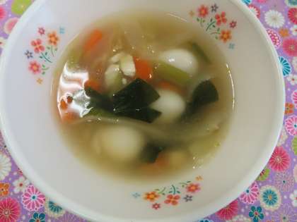 ふわふわでやわらかい、豆腐バーグでした。スープには多くのうずらのたまごが入っています。おいしかったです。ごちそうさまでした。
