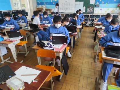 教室に入ると「Chromebook」を操作して調べ学習をしていました。キーワードが「朝のリレー」の話に出てくる、カムチャッカ・メキシコ・ニューヨーク・ローマを地図上で探して確認していきます。