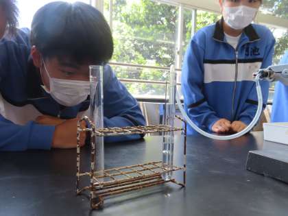 火で熱するとぶくぶくと泡が出てきました。そして試験管の水が白く濁ってきました。何故濁ったのでしょう。