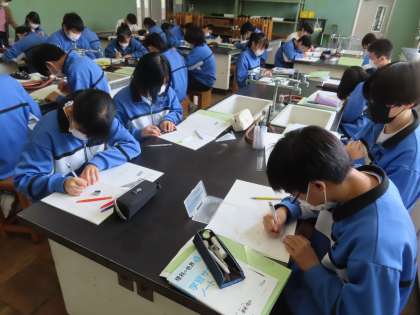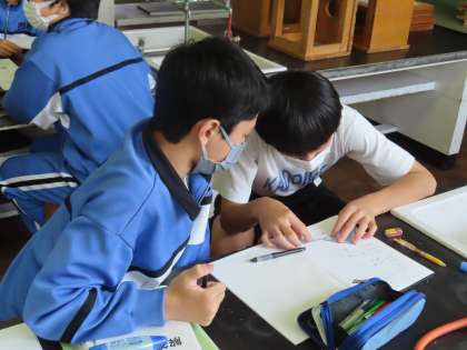 4.25 3Cの理科は「2つの力の合力の表し方」を学習していました。ノートに2つの力を記入し、どの方向に、どのくらいの力で矢印を書けばよいのかを考えていました。