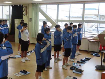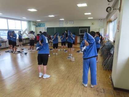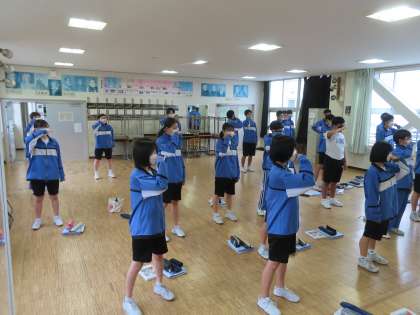 3Aは発声練習の前の体ほぐしの時間です。肩や腕のストレッチをして気持ちをリラックスしていきます。