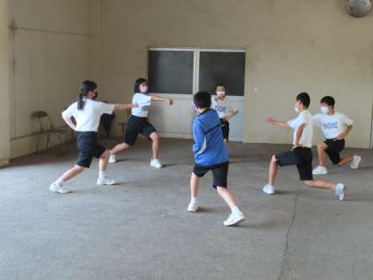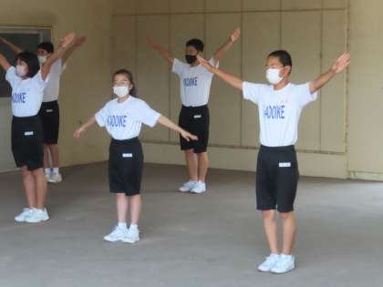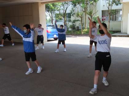 リーダーの掛け声でグループごと完成形をめざして頑張っています。ガンバレ応援団!
