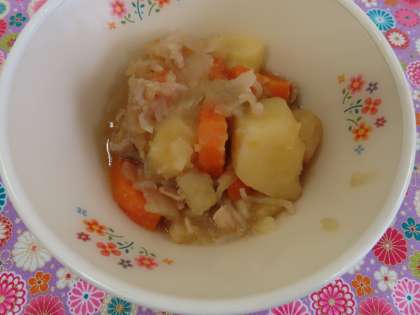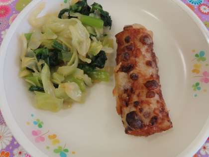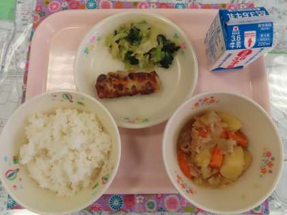 大きなジャガイモとたくさんの野菜が入った肉じゃがでした。肉じゃがの柔らかさとカリカリのちくわの天ぷらがほどよく合います。カラシナのアクセントもおいしかったです。ごちそうさまでした。