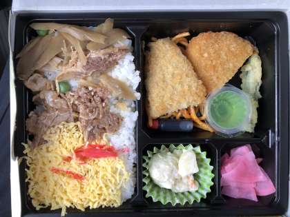 バスの中でお弁当です。 美味しそうです!