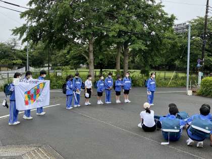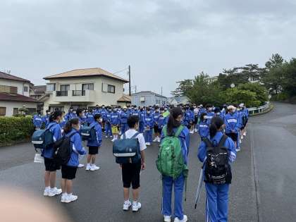 朝の出発式です。雨がぱらついていましたが、少しずつ天気が良くなっていきました。