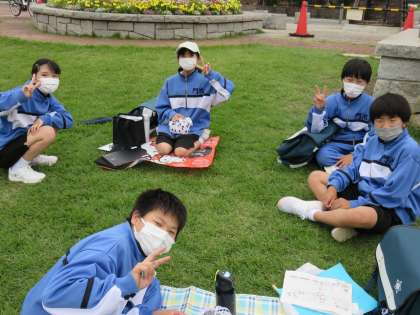 お昼ご飯は、雨がしっかりと止んだので、近くの公園などでレジャーシートを広げて食べることができました。
