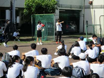 天気は快晴です。2年生は、学年目標「つみき」を踏まえて つみきの土台みんなでつくろや をスローガンに沼津市学校(高校)めぐりの旅に出かけました。