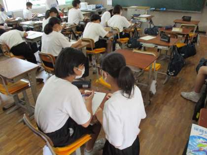 今週末最後の授業は学活でした。各クラス、それぞれの課題について取り組んでいました。