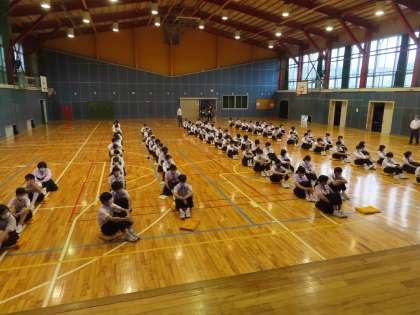 3年生は朝早く登校し、修学旅行の解団式を行いました。