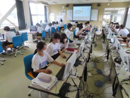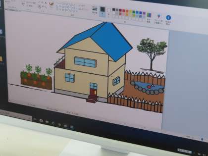 パソコンのソフトを使って、「住みたい家」の外観図を作っていました。家の形、色、屋根、庭、樹木などを描き理想の家を作っていきます。細かな図に表していました。