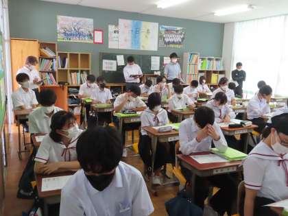 3Aの道徳は杉山先生です。教職員研修センターからアドバイザーの先生が参観授業をしています。校内の先生方も見学に来ました。