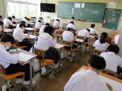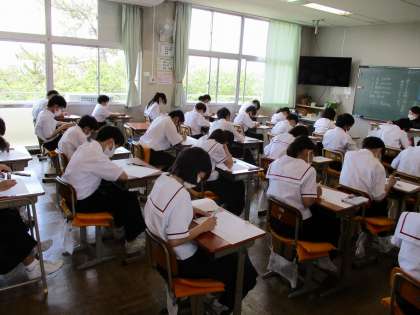 本日は技能教科の期末テスト日です。1年生は音楽 2年生は美術、3年生は技術・家庭のテストに取り組みました。これまでの学習の成果が発揮されることを願います。I組は英語の授業に取り組みました。
