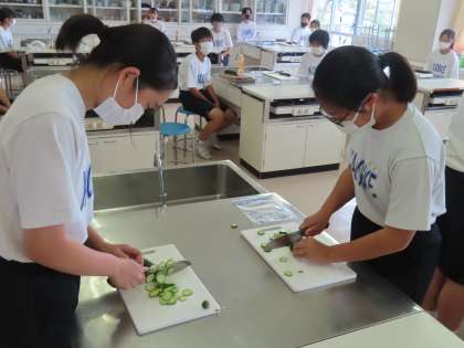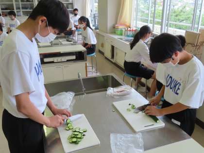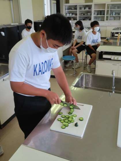 包丁の使い方のテストです。キュウリの千切りにチャレンジしています。