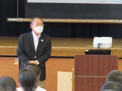1年生の探求学習は「門池の森」についてをテーマに当時の門池中学校PTA会長であった「多家一彦さん」にお話しをいただきました。