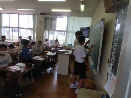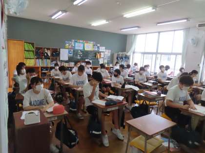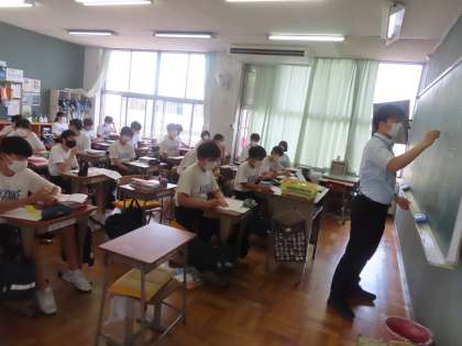 横浜国立大学、高木展郎名誉教授をお迎えし、授業公開をしました。小学校から行っている「あたたかな聴き方・やさしい話し方」が中学校においてどこまで実践できているのか、授業を見て助言をいただきます。