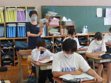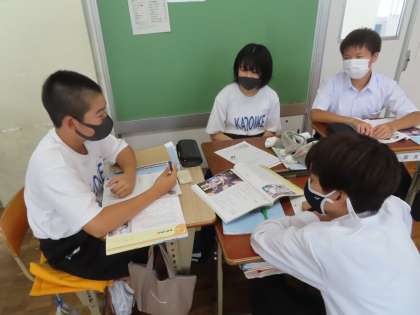 2Dの道徳は矢後先生です。異性間の友情をテーマにした「サキとタク」という話です。それぞれの立場になって考えていきます。異性を信頼し励まし合えるような関係を気づくためにはどうしたら・・・みんなで考えていきます。