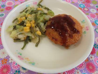 醤油味の五目ラーメンでした。野菜もたくさん入っていておいしくいただきました。コロッケの中に枝豆がたくさん入っています。食べごたえのあるコロッケでした。ごちそうさまでした。